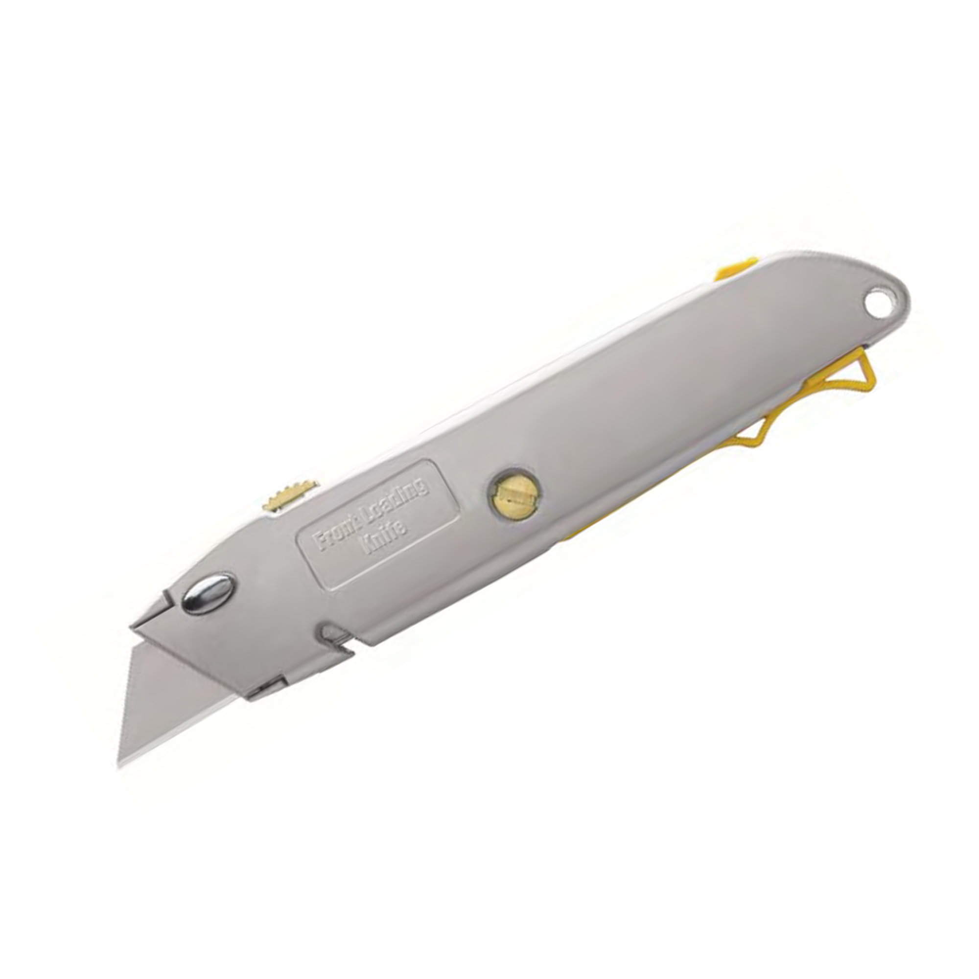 The Front Loading Utility Knife is both convenient and functional. Loads blades from the front without tools. The blade access chamber is conveniently located.